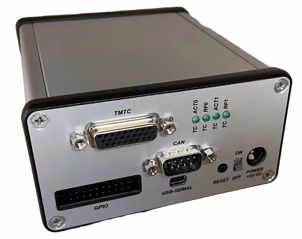 The TM/TC EGSE hardware establishes the link between the on-board flight segment and the ground segment software. The EGSE features standardized RS422 interfaces supporting up to 10 MBPS transfers on the downlink and up to 1 MBPS on the uplink. The EGSE hardware communicates with the ground segment software through a 10/100/1000 Mbit/s Ethernet interfaces via TCP/IP. The TM/TC EGSE hardware is based on our GRTMRX and GRTCTX IP cores.